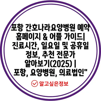 ✅ 포항 간호나라요양병원의 진료시간과 예약 방법을 쉽게 알아보세요.
