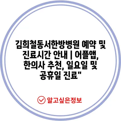 ✅ 김희철동서한방병원의 진료시간과 예약 방법을 알아보세요.