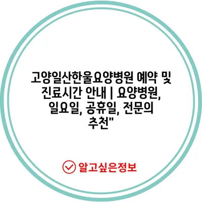 ✅ 고양일산한울요양병원의 진료시간과 예약 방법을 알아보세요.