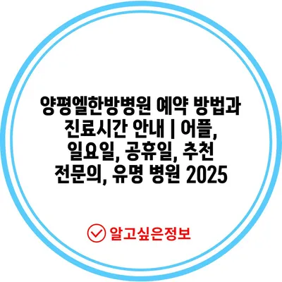 ✅ 양평엘한방병원 예약 방법과 진료시간을 지금 바로 알아보세요!