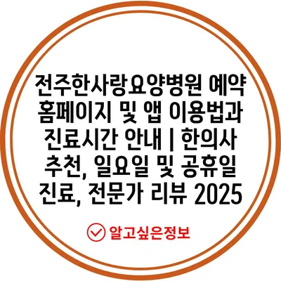 전주한사랑요양병원 예약 홈페이지 및 앱 이용법과 진료시간 공지 | 한의사 추천, 일요일 및 공휴일 진료, 전문가 리뷰 2025에서는 보다 나은 의료 서비스를 제공하기 위한 유용한 내용을 알려알려드리겠습니다.