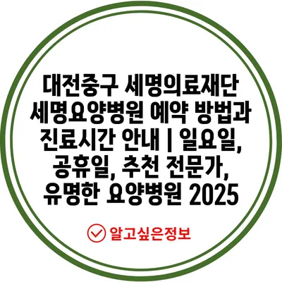대전중구 세명의료재단 세명요양병원 예약 방법과 진료시간 공지 | 일요일, 공휴일, 추천 전문가, 유명한 요양병원 2025 에 대해 자주 묻는 질문 TOP 5