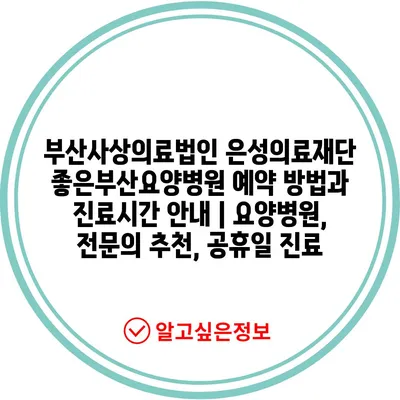 부산사상의료법인 은성의료재단 좋은부산요양병원 예약 방법과 진료시간 공지 | 요양병원, 전연락 추천, 공휴일 진료 에 대해 자주 묻는 질문 TOP 5