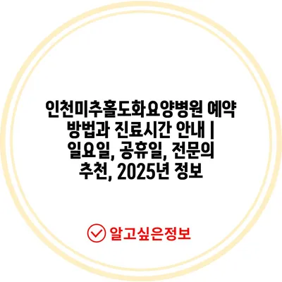 인천미추홀도화요양병원 예약 방법과 진료시간 공지 | 일요일, 공휴일, 전연락 추천, 2025년 정보 에 대해 자주 묻는 질문 TOP 5