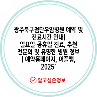 ✅ 광주북구첨단우암병원의 예약 방법을 지금 확인해 보세요!