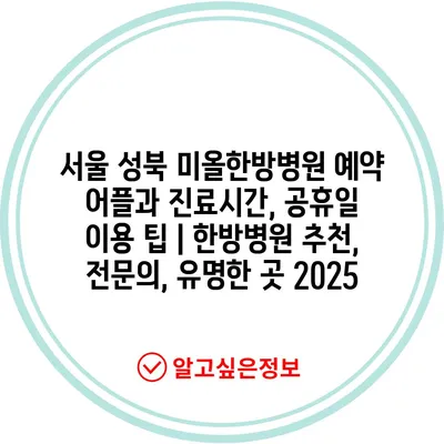✅ 서울 성북 미올한방병원의 진료 시간 및 예약 방법을 자세히 알아보세요.