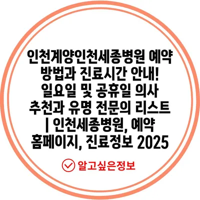 인천계양인천세종병원 예약 방법과 진료시간 안내! 일요일 및 공휴일 의사 추천과 유명 전문의 리스트 | 인천세종병원, 예약 홈페이지, 진료정보 2025