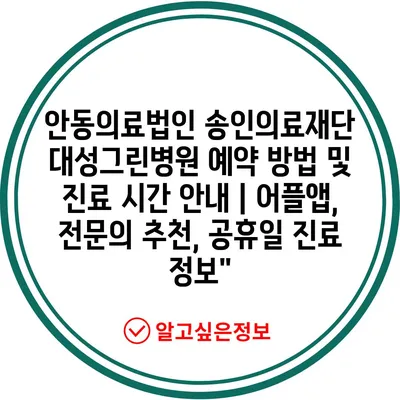 ✅ 안동 대성그린병원 예약 방법을 자세히 알아보세요!