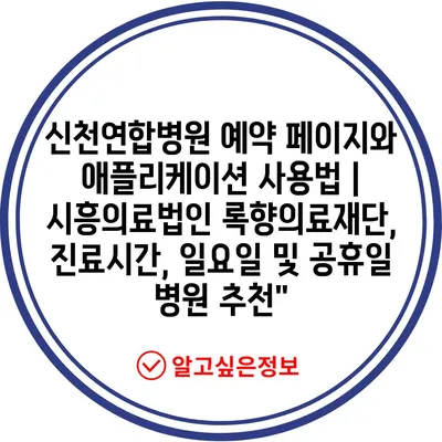 ✅ 신천연합병원 예약 방법과 유용한 팁을 지금 바로 알아보세요.