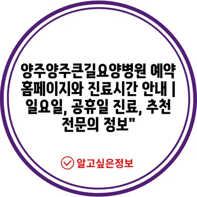 ✅ 양주양주큰길요양병원 예약 절차와 진료 시간에 대해 자세히 알아보세요.