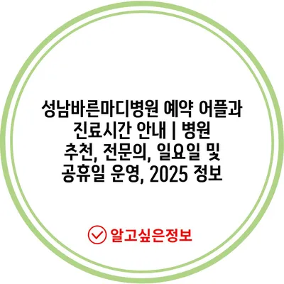 성남바른마디병원 예약 어플과 진료시간 공지 | 병원 추천, 전연락, 일요일 및 공휴일 운영, 2025 정보 에 대해 자주 묻는 질문 TOP 5