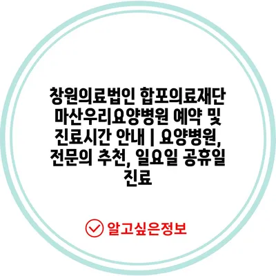 창원의료법인 합포의료재단 마산우리요양병원 예약 및 진료시간 공지 | 요양병원, 전연락 추천, 일요일 공휴일 진료 에 대해 자주 묻는 질문 TOP 5