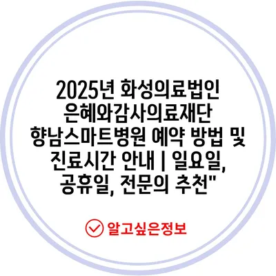 2025년 화성의료법인 은혜와감사의료재단 향남스마트병원 예약 방법 및 진료시간 공지 | 일요일, 공휴일, 전연락 추천에 대해 자주 묻는 질문 TOP 5