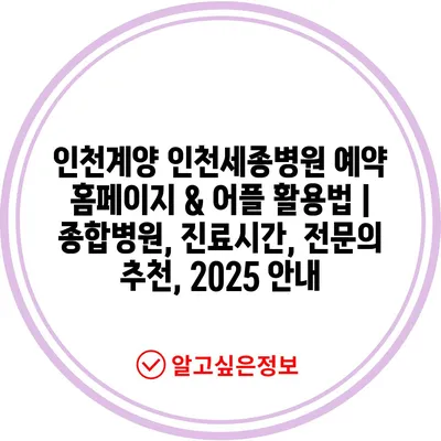 인천계양 인천세종병원 예약 홈페이지 & 어플 활용법 | 종합병원, 진료시간, 전문의 추천, 2025 안내