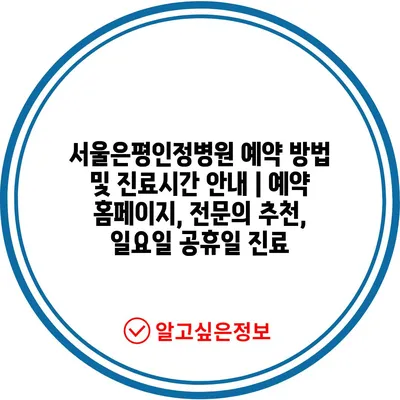 ✅ 서울은평인정병원의 진료시간과 예약 방법을 한눈에 알아보세요.