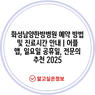 ✅ 화성남양한방병원의 예약 방법을 자세히 알아보세요.
