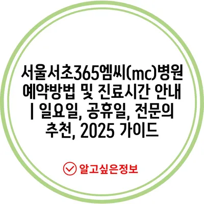✅ 서울서초365엠씨병원의 진료 시간과 예약 방법을 지금 바로 알아보세요!