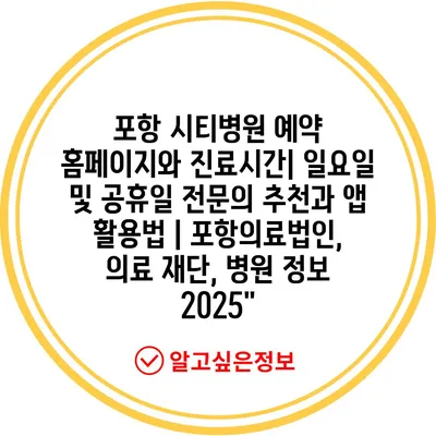 포항 시티병원 예약 홈페이지와 진료시간| 일요일 및 공휴일 전연락 추천과 앱 활용법 | 포항의료법인, 의료 재단, 병원 정보 2025″ 에 대해 자주 묻는 질문 TOP 5