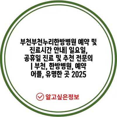 부천부천누리한방병원 예약 및 진료시간 공지| 일요일, 공휴일 진료 및 추천 전연락 | 부천, 한방병원, 예약 어플, 유명한 곳 2025 에 대해 자주 묻는 질문 TOP 5