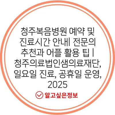 청주복음병원 예약 및 진료시간 안내| 전문의 추천과 어플 활용 팁 | 청주의료법인샘의료재단, 일요일 진료, 공휴일 운영, 2025