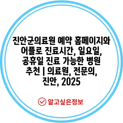 ✅ 진안군의료원의 진료시간 및 예약 방법을 쉽게 알아보세요.