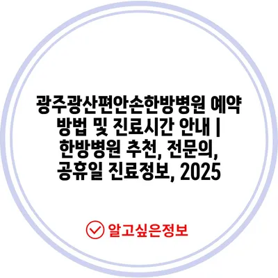 광주광산편안손한방병원 예약 방법 및 진료시간 안내 | 한방병원 추천, 전문의, 공휴일 진료정보, 2025
