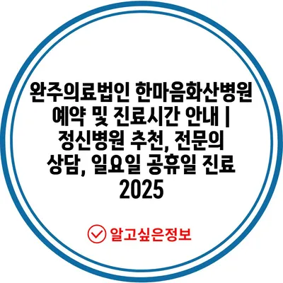완주의료법인 한마음화산병원 예약 및 진료시간 공지 | 정신병원 추천, 전연락 상담, 일요일 공휴일 진료 2025 에 대해 자주 묻는 질문 TOP 5