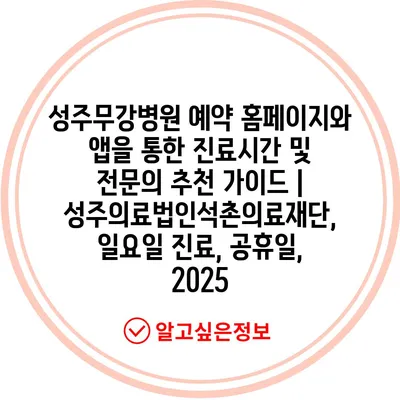 성주무강병원 예약 홈페이지와 앱을 통한 진료시간 및 전연락 추천 설명서 | 성주의료법인석촌의료재단, 일요일 진료, 공휴일, 2025 에 대해 자주 묻는 질문 TOP 5