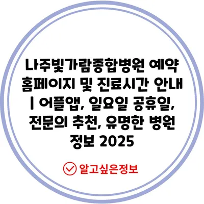 나주빛가람종합병원 예약 홈페이지 및 진료시간 공지 | 어플앱, 일요일 공휴일, 전연락 추천, 유명한 병원 정보 2025