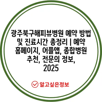 광주북구해피뷰병원 예약 방법 및 진료시간 총정리 | 예약 홈페이지, 어플앱, 종합병원 추천, 전연락 정보, 2025 에 대해 자주 묻는 질문 TOP 5