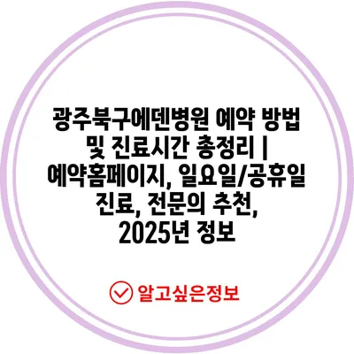 광주북구에덴병원 예약 방법 및 진료시간 총정리 | 예약홈페이지, 일요일/공휴일 진료, 전연락 추천, 2025년 정보 에 대해 자주 묻는 질문 TOP 5