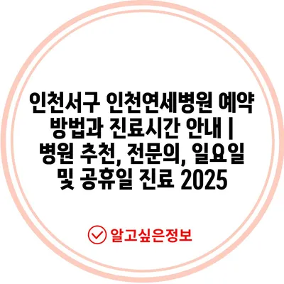 인천서구 인천연세병원 예약 방법과 진료시간 공지 | 병원 추천, 전연락, 일요일 및 공휴일 진료 2025 에 대해 자주 묻는 질문 TOP 5