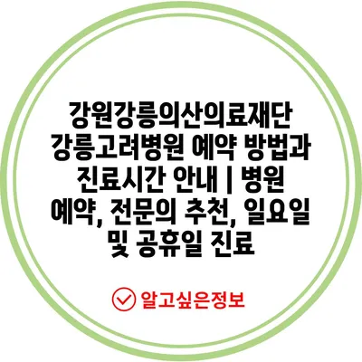 ✅ 강릉고려병원 예약 방법과 진료시간을 지금 바로 알아보세요!
