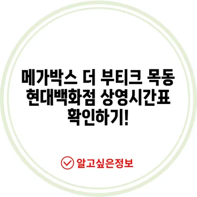 메가박스 더 부티크 목동 현대백화점 상영시간표 확인하기!