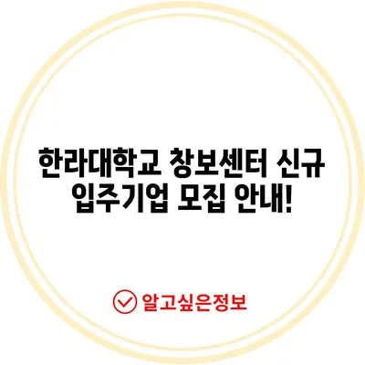 한라대학교 창보센터 신규 입주기업 모집 안내!