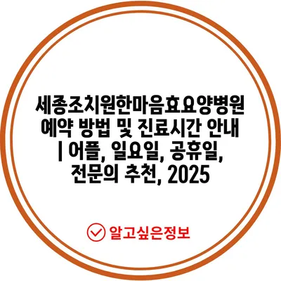 세종조치원한마음효요양병원 예약 방법 및 진료시간 공지 | 어플, 일요일, 공휴일, 전연락 추천, 2025 에 대해 자주 묻는 질문 TOP 5