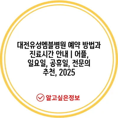 ✅ 대전유성엠블병원의 진료시간과 예약 방법을 자세히 알아보세요.