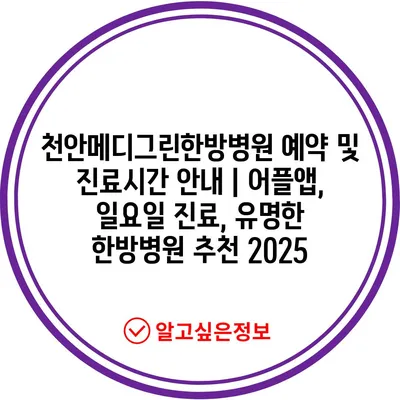 ✅ 천안메디그린한방병원의 진료시간과 예약 방법을 알아보세요.