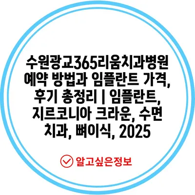 수원광교365리움치과병원 예약 방법과 임플란트 가격, 후기 총정리 | 임플란트, 지르코니아 크라운, 수면 치과, 뼈이식, 2025에 대한 내용을 소개합니다.