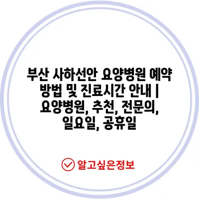✅ 부산 사하선안 요양병원의 예약 방법과 진료시간을 자세히 알아보세요.