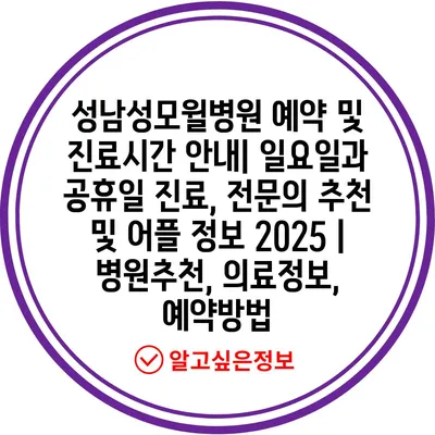성남성모윌병원 예약 및 진료시간 공지| 일요일과 공휴일 진료, 전연락 추천 및 어플 정보 2025 | 병원추천, 의료정보, 예약방법 에 대해 자주 묻는 질문 TOP 5