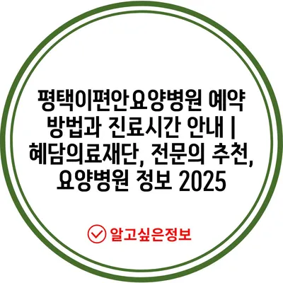 평택이편안요양병원 예약 방법과 진료시간 공지 | 혜담의료재단, 전연락 추천, 요양병원 정보 2025 에 대해 자주 묻는 질문 TOP 5