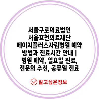 서울구로의료법인 서울효천의료재단 에이치플러스자립병원 예약 방법과 진료시간 공지 | 병원 예약, 일요일 진료, 전연락 추천, 공휴일 진료에 대해 자주 묻는 질문 TOP 5