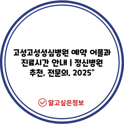 고성고성성심병원 예약 어플과 진료시간 공지 | 정신병원 추천, 전연락, 2025″ 에 대해 자주 묻는 질문 TOP 5