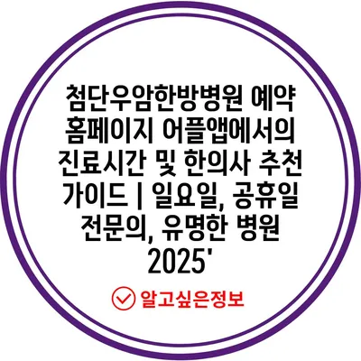 첨단우암한방병원 예약 홈페이지 어플앱에서의 진료시간 및 한의사 추천 설명서 | 일요일, 공휴일 전연락, 유명한 병원 2025’에 대해 자주 묻는 질문 TOP 5