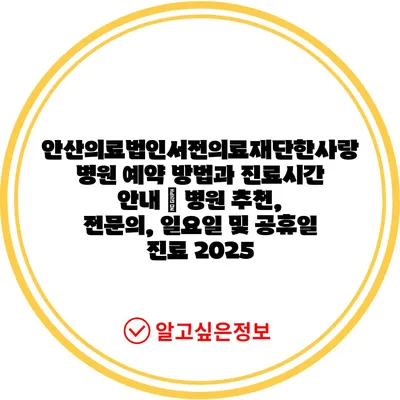 안산의료법인서전의료재단한사랑병원 예약 방법과 진료시간 공지 | 병원 추천, 전연락, 일요일 및 공휴일 진료 2025 에 대해 자주 묻는 질문 TOP 5