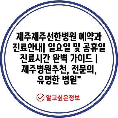 ✅ 제주제주선한병원의 진료시간과 예약 방법을 자세히 알아보세요.