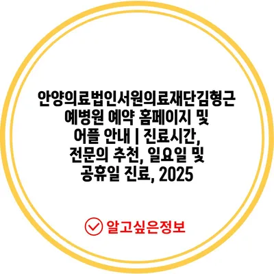 ✅ 안양서원의료재단에서 제공하는 진료시간 및 예약 정보를 지금 바로 확인해 보세요.