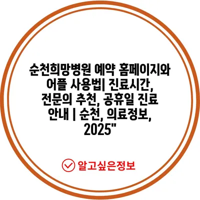 순천희망병원 예약 홈페이지와 어플 사용법| 진료시간, 전연락 추천, 공휴일 진료 공지 | 순천, 의료정보, 2025″ 에 대해 자주 묻는 질문 TOP 5