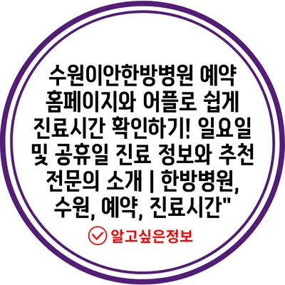 ✅ 수원이안한방병원의 진료시간과 예약 방법을 자세히 알아보세요.